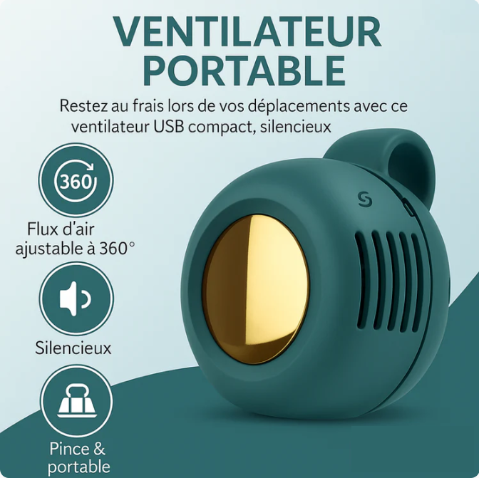 Ce mini ventilateur mains libres devient votre meilleur alliĂ© contre la chaleur. Que vous soyez en promenade, au bureau ou en pleine sĂ©ance de sport : clipsez-le, allumez-le, et profitez dâune fraĂźcheur continue.